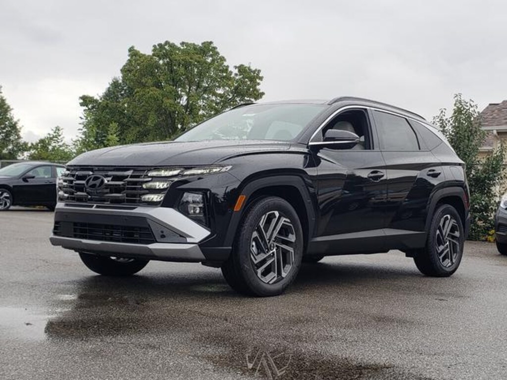 Check out all these great options Option Group 01, 19" Alloy Wheels, 4-Wheel Disc Brakes, 8 Speakers, ABS brakes, Air Conditioning, All Season Fitted Liners, Alloy wheels, AM/FM radio: SiriusXM, Apple CarPlay & Android Auto, Auto High-beam Headlights, Auto-dimming Rear-View mirror, Automatic temperature control, Brake assist, Bumpers: body-color, Cargo Net, Cargo Tray, Carpeted Floor Mats, Cross Rails, Delay-off headlights, Driver door bin, Driver vanity mirror, Dual front impact airbags, Dual front side impact airbags, Electronic Stability Control, Emergency communication system: Bluelink+, First Aid Kit, Four wheel independent suspension, Front anti-roll bar, Front Bucket Seats, Front Center Armrest, Front dual zone A/C, Front reading lights, Fully automatic headlights, Garage door transmitter: HomeLink, Heads-Up Display, Heated & Ventilated Front Bucket Seats, Heated door mirrors, Heated front seats, Heated rear seats, Heated steering wheel, Illuminated entry, Leather steering wheel, Leather-Trimmed Seat Trim, Low tire pressure warning, Memory seat, Navigation System, Occupant sensing airbag, Outside temperature display, Overhead airbag, Overhead console, Panic alarm, Passenger door bin, Passenger vanity mirror, Power door mirrors, Power driver seat, Power Liftgate, Power moonroof, Power passenger seat, Power steering, Power windows, Radio data system, Radio: Bose Premium w/AM/FM/HD Audio System, Rain sensing wipers, Rear anti-roll bar, Rear reading lights, Rear seat center armrest, Rear side impact airbag, Rear window defroster, Rear window wiper, Remote keyless entry, Roadside Assistance Kit, Security system, Speed control, Split folding rear seat, Spoiler, Steering wheel mounted audio controls, Tachometer, Telescoping steering wheel, Tilt steering wheel, Traction control, Trip computer, Turn signal indicator mirrors, Variably intermittent wipers, and Ventilated front seats. Ash Black 2025 Hyundai Tucson Hybrid Limited AWD 6-Speed Automatic 1.6L I4 DGI Hybrid Turbocharged DOHC 16V LEV3-SULEV30