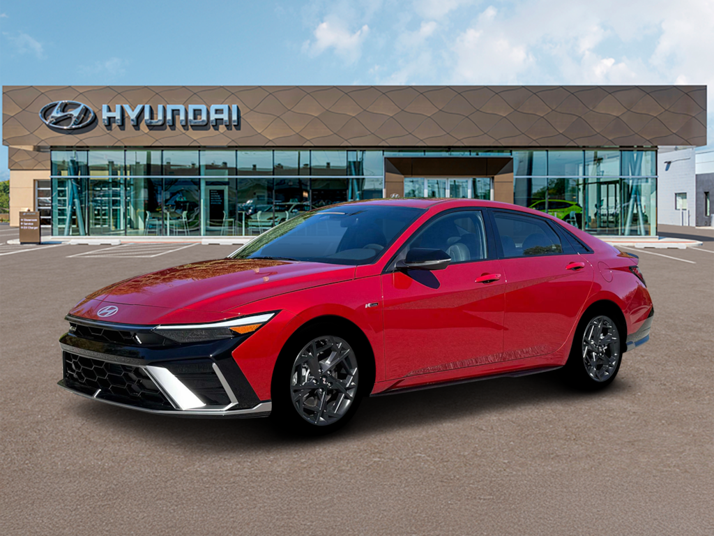 Check out all these great options Option Group 01, 18" x 7.5J Alloy Wheels, 4-Wheel Disc Brakes, 8 Speakers, ABS brakes, Air Conditioning, Alloy wheels, AM/FM radio: SiriusXM, Apple CarPlay & Android Auto, Auto High-beam Headlights, Automatic temperature control, Brake assist, Bumpers: body-color, Cargo Net, Cargo Tray, Carpeted Floor Mats, Combination Cloth and Leatherette Seating Surfaces, Delay-off headlights, Driver door bin, Driver vanity mirror, Dual front impact airbags, Dual front side impact airbags, Electronic Stability Control, Emergency communication system: None, Exterior Parking Camera Rear, First Aid Kit, Four wheel independent suspension, Front anti-roll bar, Front Bucket Seats, Front Center Armrest, Front dual zone A/C, Front reading lights, Fully automatic headlights, Heated door mirrors, Heated front seats, Heated Front Sport Bucket Seats, Illuminated entry, Leather Shift Knob, Leather steering wheel, Low tire pressure warning, Navigation System, Occupant sensing airbag, Outside temperature display, Overhead airbag, Overhead console, Panic alarm, Passenger door bin, Passenger vanity mirror, Power door mirrors, Power driver seat, Power moonroof, Power steering, Power windows, Radio: AM/FM/HD/SiriusXM Display Audio, Rear anti-roll bar, Rear seat center armrest, Rear side impact airbag, Rear window defroster, Remote keyless entry, Security system, Speed control, Speed-sensing steering, Split folding rear seat, Spoiler, Sport steering wheel, Steering wheel mounted audio controls, Tachometer, Telescoping steering wheel, Tilt steering wheel, Traction control, Trip computer, Turn signal indicator mirrors, and Variably intermittent wipers. Ultimate Red 2026 Hyundai Elantra N Line FWD 7-Speed Dual Clutch DCT I4