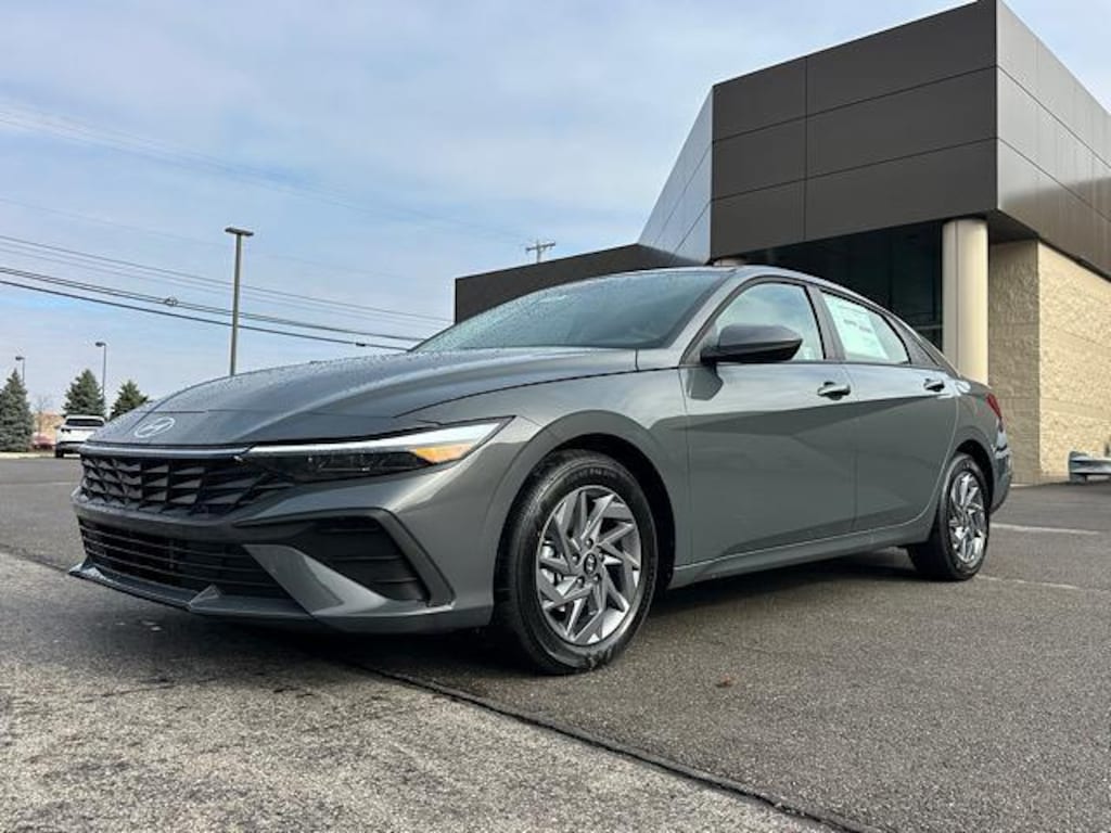 Check out all these great options Option Group 01, 16" x 6.5J Alloy Wheels, 4-Wheel Disc Brakes, 6 Speakers, ABS brakes, Air Conditioning, Alloy wheels, AM/FM radio, Apple CarPlay & Android Auto, Auto High-beam Headlights, Automatic temperature control, Brake assist, Bumpers: body-color, Delay-off headlights, Driver door bin, Driver vanity mirror, Dual front impact airbags, Dual front side impact airbags, Electronic Stability Control, Exterior Parking Camera Rear, Front anti-roll bar, Front Bucket Seats, Front Center Armrest, Front dual zone A/C, Front reading lights, Front wheel independent suspension, Fully automatic headlights, Heated door mirrors, Illuminated entry, Low tire pressure warning, Occupant sensing airbag, Outside temperature display, Overhead airbag, Overhead console, Panic alarm, Passenger door bin, Passenger vanity mirror, Power door mirrors, Power steering, Power windows, Premium Cloth Seat Trim, Radio: AM/FM/HD Display Audio, Rear side impact airbag, Rear window defroster, Remote keyless entry, Security system, Speed control, Speed-sensing steering, Steering wheel mounted audio controls, Tachometer, Telescoping steering wheel, Tilt steering wheel, Traction control, Trip computer, and Variably intermittent wipers. Ecotronic Gray Pearl 2026 Hyundai Elantra Hybrid Blue FWD 6-Speed Dual Clutch I4