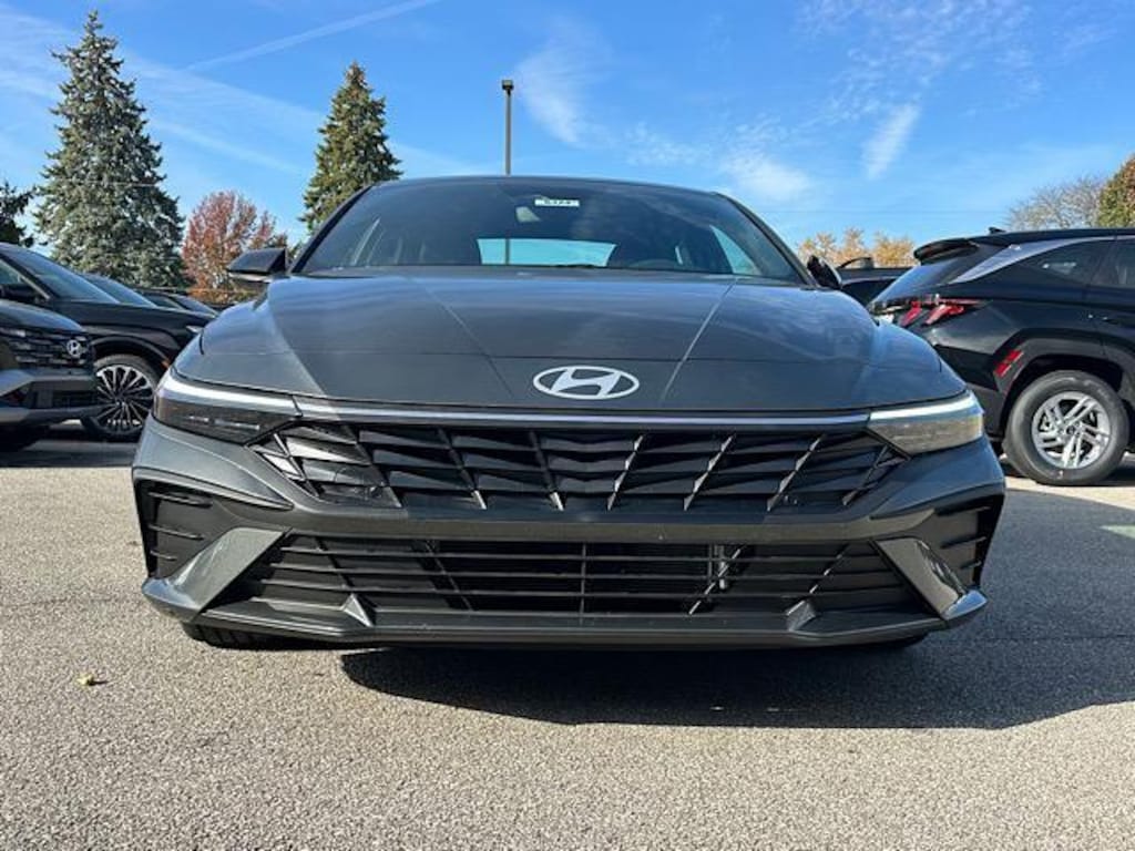 Check out all these great options Option Group 01, 4-Wheel Disc Brakes, 6 Speakers, ABS brakes, Air Conditioning, Alloy wheels, AM/FM radio: SiriusXM, Apple CarPlay & Android Auto, Auto High-beam Headlights, Automatic temperature control, Brake assist, Bumpers: body-color, Cargo Net, Carpeted Floor Mats, Delay-off headlights, Driver door bin, Driver vanity mirror, Dual front impact airbags, Dual front side impact airbags, Electronic Stability Control, Exterior Parking Camera Rear, First Aid Kit, Front anti-roll bar, Front Bucket Seats, Front Center Armrest, Front dual zone A/C, Front reading lights, Front wheel independent suspension, Fully automatic headlights, Heated door mirrors, Illuminated entry, Low tire pressure warning, Navigation System, Occupant sensing airbag, Outside temperature display, Overhead airbag, Overhead console, Panic alarm, Passenger door bin, Passenger vanity mirror, Power door mirrors, Power steering, Power windows, Premium Cloth Seat Trim, Radio: AM/FM/HD/SiriusXM Display Audio, Rear side impact airbag, Rear window defroster, Remote keyless entry, Security system, Speed control, Speed-sensing steering, Spoiler, Steering wheel mounted audio controls, Tachometer, Telescoping steering wheel, Tilt steering wheel, Traction control, Trip computer, and Variably intermittent wipers. Amazon Gray 2026 Hyundai Elantra Hybrid SEL Sport FWD 6-Speed Dual Clutch I4