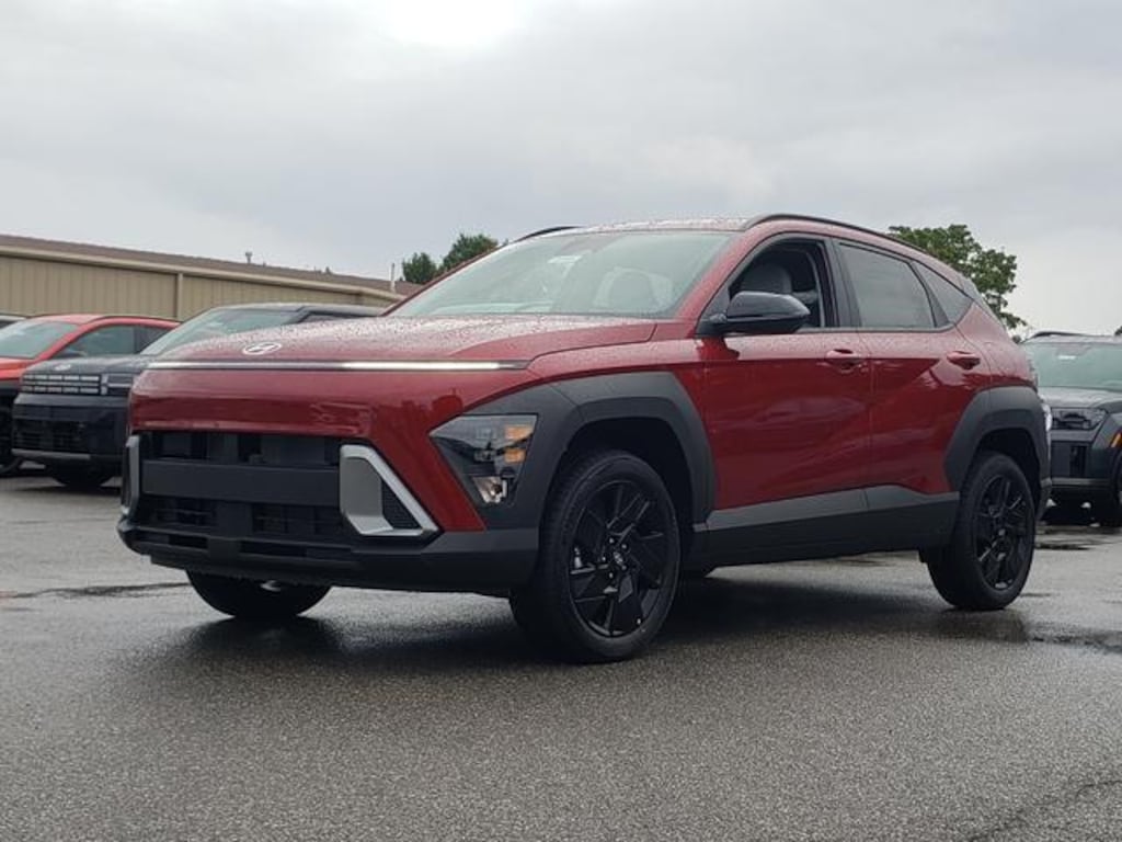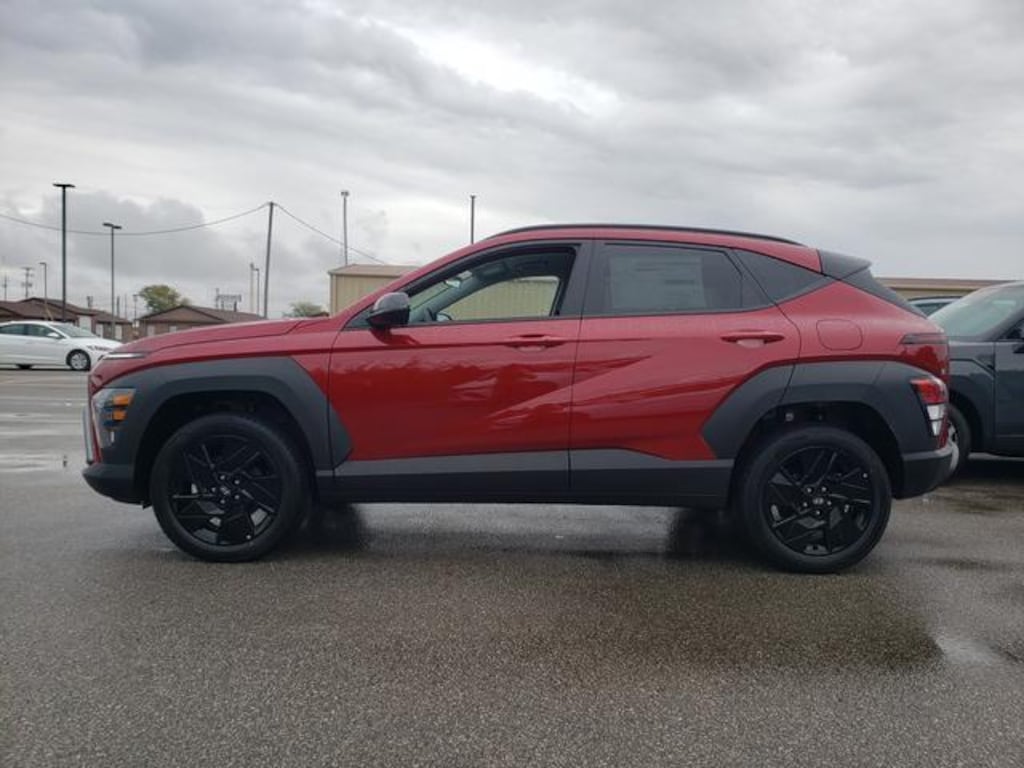 Check out all these great options Option Group 01, 4-Wheel Disc Brakes, 6 Speakers, ABS brakes, Air Conditioning, Alloy wheels, AM/FM radio: SiriusXM, Apple CarPlay & Android Auto, Auto High-beam Headlights, Automatic temperature control, Brake assist, Bumpers: body-color, Cargo Blocks, Cargo Net, Carpeted Floor Mats, Cloth Seat Trim, Cross Rails, Delay-off headlights, Driver door bin, Driver vanity mirror, Dual front impact airbags, Dual front side impact airbags, Electronic Stability Control, Emergency communication system: Bluelink+, Exterior Parking Camera Rear, First Aid Kit, Four wheel independent suspension, Front anti-roll bar, Front Bucket Seats, Front Center Armrest, Front dual zone A/C, Front reading lights, Fully automatic headlights, Heated door mirrors, Heated Front Bucket Seats, Heated front seats, Illuminated entry, Leather steering wheel, Low tire pressure warning, Occupant sensing airbag, Outside temperature display, Overhead airbag, Panic alarm, Passenger door bin, Passenger vanity mirror, Power door mirrors, Power steering, Power windows, Radio: AM/FM/SiriusXM/HD Radio Audio System, Rear anti-roll bar, Rear seat center armrest, Rear window defroster, Rear window wiper, Remote keyless entry, Security system, Speed control, Speed-sensing steering, Split folding rear seat, Spoiler, Steering wheel mounted audio controls, Tachometer, Telescoping steering wheel, Tilt steering wheel, Traction control, Trip computer, Turn signal indicator mirrors, Variably intermittent wipers, and Wheels: 18" x 7.0J Black Alloy. Ultimate Red Metallic 2026 Hyundai Kona SEL AWD CVT 2.0L I4 DOHC 16V