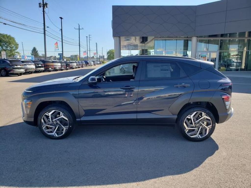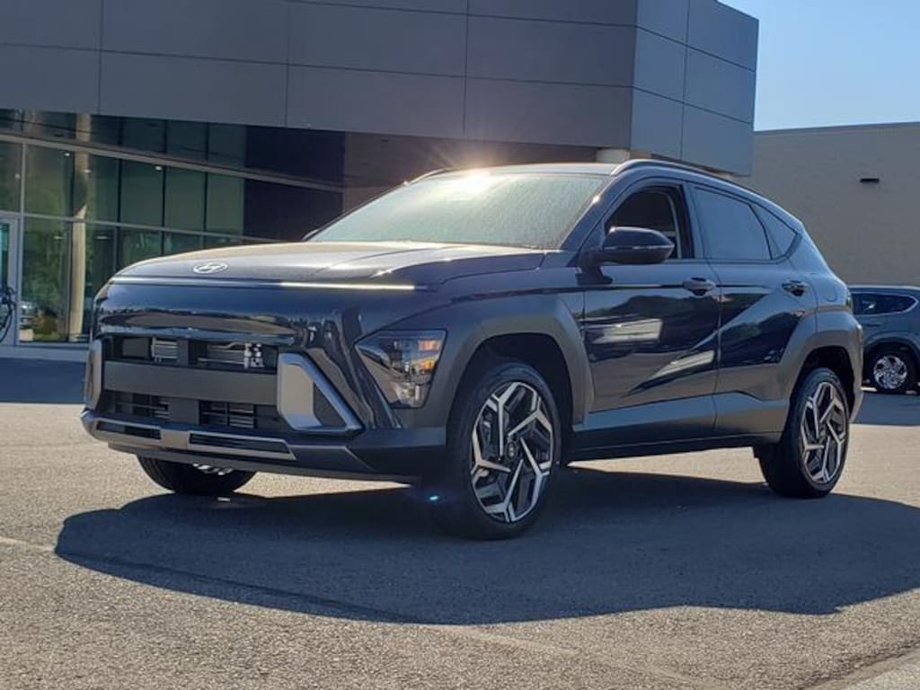 Check out all these great options Option Group 01, 4-Wheel Disc Brakes, 6 Speakers, ABS brakes, Air Conditioning, Alloy wheels, AM/FM radio: SiriusXM, Apple CarPlay & Android Auto, Auto High-beam Headlights, Automatic temperature control, Brake assist, Bumpers: body-color, Cargo Net, Cargo Tray, Carpeted Floor Mats, Delay-off headlights, Driver door bin, Driver vanity mirror, Dual front impact airbags, Dual front side impact airbags, Electronic Stability Control, Emergency communication system: Bluelink+, Exterior Parking Camera Rear, First Aid Kit, Four wheel independent suspension, Front anti-roll bar, Front Bucket Seats, Front Center Armrest, Front dual zone A/C, Front reading lights, Fully automatic headlights, H-Tex Seat Trim, Heated door mirrors, Heated Front Bucket Seats, Heated front seats, Illuminated entry, Leather steering wheel, Lifestyle Hitch, Low tire pressure warning, Occupant sensing airbag, Outside temperature display, Overhead airbag, Panic alarm, Passenger door bin, Passenger vanity mirror, Power door mirrors, Power driver seat, Power steering, Power windows, Radio: AM/FM/SiriusXM/HD Radio Audio System, Rear anti-roll bar, Rear seat center armrest, Rear window defroster, Rear window wiper, Remote keyless entry, Security system, Speed control, Speed-sensing steering, Split folding rear seat, Spoiler, Steering wheel mounted audio controls, Tachometer, Telescoping steering wheel, Tilt steering wheel, Traction control, Trip computer, Turn signal indicator mirrors, Variably intermittent wipers, and Wheels: 19" x 7.5J Black/Silver Alloy. Denim Blue Pearl 2026 Hyundai Kona SEL AWD 8-Speed Automatic I4