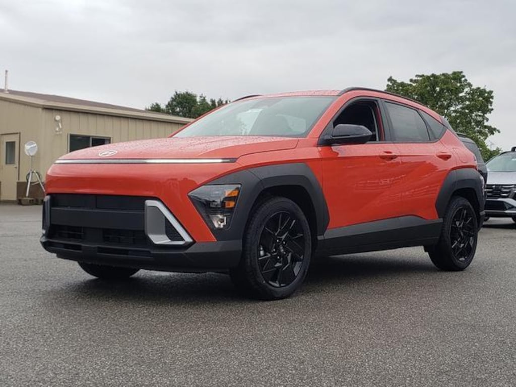 Check out all these great options Option Group 01, 4-Wheel Disc Brakes, 6 Speakers, ABS brakes, Air Conditioning, Alloy wheels, AM/FM radio: SiriusXM, Apple CarPlay & Android Auto, Auto High-beam Headlights, Automatic temperature control, Brake assist, Bumpers: body-color, Cargo Blocks, Cargo Net, Carpeted Floor Mats, Cloth Seat Trim, Cross Rails, Delay-off headlights, Driver door bin, Driver vanity mirror, Dual front impact airbags, Dual front side impact airbags, Electronic Stability Control, Emergency communication system: Bluelink+, Exterior Parking Camera Rear, First Aid Kit, Front anti-roll bar, Front Bucket Seats, Front Center Armrest, Front dual zone A/C, Front reading lights, Front wheel independent suspension, Fully automatic headlights, Heated door mirrors, Heated Front Bucket Seats, Heated front seats, Illuminated entry, Leather steering wheel, Low tire pressure warning, Occupant sensing airbag, Outside temperature display, Overhead airbag, Panic alarm, Passenger door bin, Passenger vanity mirror, Power door mirrors, Power steering, Power windows, Radio: AM/FM/SiriusXM/HD Radio Audio System, Rear seat center armrest, Rear window defroster, Rear window wiper, Remote keyless entry, Security system, Speed control, Speed-sensing steering, Split folding rear seat, Spoiler, Steering wheel mounted audio controls, Tachometer, Telescoping steering wheel, Tilt steering wheel, Traction control, Trip computer, Turn signal indicator mirrors, Variably intermittent wipers, and Wheels: 18" x 7.0J Black Alloy. Soultronic Orange Pearl 2026 Hyundai Kona SEL FWD CVT 2.0L I4 DOHC 16V