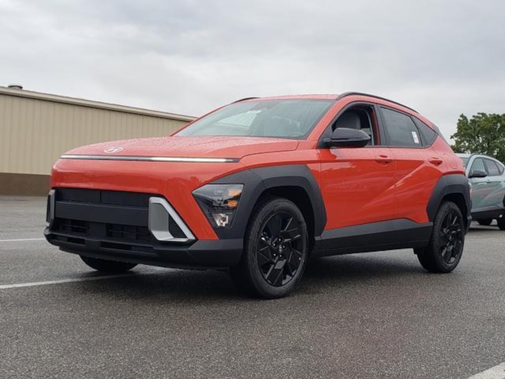 Check out all these great options Option Group 01, 4-Wheel Disc Brakes, 6 Speakers, ABS brakes, Air Conditioning, Alloy wheels, AM/FM radio: SiriusXM, Apple CarPlay & Android Auto, Auto High-beam Headlights, Automatic temperature control, Brake assist, Bumpers: body-color, Cargo Net, Cargo Organizer, Carpeted Floor Mats, Cloth Seat Trim, Cross Rails, Delay-off headlights, Driver door bin, Driver vanity mirror, Dual front impact airbags, Dual front side impact airbags, Electronic Stability Control, Emergency communication system: Bluelink+, Exterior Parking Camera Rear, First Aid Kit, Front anti-roll bar, Front Bucket Seats, Front Center Armrest, Front dual zone A/C, Front reading lights, Front wheel independent suspension, Fully automatic headlights, Heated door mirrors, Heated Front Bucket Seats, Heated front seats, Illuminated entry, Leather steering wheel, Low tire pressure warning, Occupant sensing airbag, Outside temperature display, Overhead airbag, Panic alarm, Passenger door bin, Passenger vanity mirror, Power door mirrors, Power steering, Power windows, Radio: AM/FM/SiriusXM/HD Radio Audio System, Rear seat center armrest, Rear window defroster, Rear window wiper, Remote keyless entry, Security system, Speed control, Speed-sensing steering, Split folding rear seat, Spoiler, Steering wheel mounted audio controls, Tachometer, Telescoping steering wheel, Tilt steering wheel, Traction control, Trip computer, Turn signal indicator mirrors, Variably intermittent wipers, and Wheels: 18" x 7.0J Black Alloy. Soultronic Orange Pearl 2026 Hyundai Kona SEL FWD CVT 2.0L I4 DOHC 16V