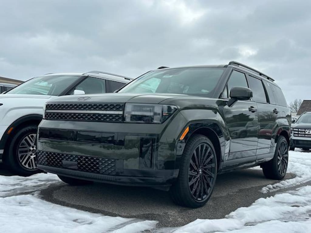 Check out all these great options Option Group 01, 12 Speakers, 3rd row seats: bench, 4-Wheel Disc Brakes, ABS brakes, Air Conditioning, Alloy wheels, AM/FM radio: SiriusXM, Apple CarPlay & Android Auto, Auto High-beam Headlights, Auto-dimming Rear-View mirror, Automatic temperature control, Brake assist, Bumpers: body-color, Cargo Cover/Screen, Cargo Net, Cargo Organizer, Carpeted Floor Mats, Delay-off headlights, Driver door bin, Driver vanity mirror, Dual front impact airbags, Dual front side impact airbags, Electronic Stability Control, Emergency communication system, Exterior Parking Camera Rear, First Aid Kit, Four wheel independent suspension, Front anti-roll bar, Front Bucket Seats, Front Center Armrest, Front dual zone A/C, Front reading lights, Fully automatic headlights, Garage door transmitter: HomeLink, Heads-Up Display, Heated and Ventilated Front Bucket Seats, Heated door mirrors, Heated front seats, Heated rear seats, Heated steering wheel, Illuminated entry, Knee airbag, Leather steering wheel, Low tire pressure warning, Memory seat, Navigation System, Occupant sensing airbag, Outside temperature display, Overhead airbag, Overhead console, Panic alarm, Passenger door bin, Passenger vanity mirror, Power door mirrors, Power driver seat, Power Liftgate, Power moonroof, Power passenger seat, Power steering, Power windows, Quilted Premium Nappa Leather Seat Trim, Radio: AM/FM/HD Bose Premium Audio System, Rain sensing wipers, Rear anti-roll bar, Rear side impact airbag, Rear window defroster, Rear window wiper, Remote keyless entry, Roadside Assistance Kit, Security system, Speed control, Speed-sensing steering, Split folding rear seat, Spoiler, Steering wheel mounted audio controls, Tachometer, Telescoping steering wheel, Tilt steering wheel, Traction control, Trip computer, Turn signal indicator mirrors, Variably intermittent wipers, Ventilated front seats, and Wheels: 21" x 8.5J Unique Dark Finish Alloy. Rockwood Green 2026 Hyundai Santa Fe Calligraphy AWD 8-Speed Automatic with SHIFTRONIC 2.5L I4