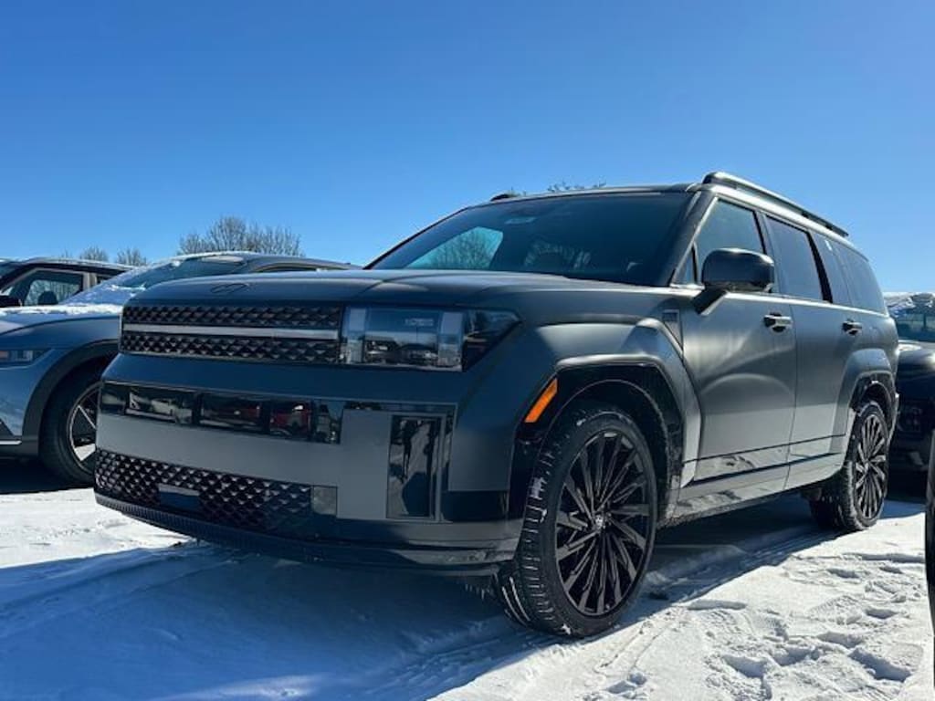 Check out all these great options Option Group 01, 12 Speakers, 3rd row seats: bench, 4-Wheel Disc Brakes, ABS brakes, Air Conditioning, All Season Fitted Liners, Alloy wheels, AM/FM radio: SiriusXM, Apple CarPlay & Android Auto, Auto High-beam Headlights, Auto-dimming Rear-View mirror, Automatic temperature control, Brake assist, Bumpers: body-color, Cargo Net, Cargo Organizer, Carpeted Floor Mats, Delay-off headlights, Driver door bin, Driver vanity mirror, Dual front impact airbags, Dual front side impact airbags, Electronic Stability Control, Emergency communication system, Exterior Parking Camera Rear, First Aid Kit, Four wheel independent suspension, Front anti-roll bar, Front Bucket Seats, Front Center Armrest, Front dual zone A/C, Front reading lights, Fully automatic headlights, Garage door transmitter: HomeLink, Heads-Up Display, Heated and Ventilated Front Bucket Seats, Heated door mirrors, Heated front seats, Heated rear seats, Heated steering wheel, Illuminated entry, Knee airbag, Leather steering wheel, Low tire pressure warning, Memory seat, Navigation System, Occupant sensing airbag, Outside temperature display, Overhead airbag, Overhead console, Panic alarm, Passenger door bin, Passenger vanity mirror, Power door mirrors, Power driver seat, Power Liftgate, Power moonroof, Power passenger seat, Power steering, Power windows, Quilted Premium Nappa Leather Seat Trim, Radio: AM/FM/HD Bose Premium Audio System, Rain sensing wipers, Rear anti-roll bar, Rear side impact airbag, Rear window defroster, Rear window wiper, Remote keyless entry, Roadside Assistance Kit, Security system, Speed control, Speed-sensing steering, Split folding rear seat, Spoiler, Steering wheel mounted audio controls, Tachometer, Telescoping steering wheel, Tilt steering wheel, Traction control, Trip computer, Turn signal indicator mirrors, Variably intermittent wipers, Ventilated front seats, and Wheels: 21" x 8.5J Unique Dark Finish Alloy. Ecotronic Gray Matte 2026 Hyundai Santa Fe Calligraphy AWD 8-Speed Automatic with SHIFTRONIC 2.5L I4