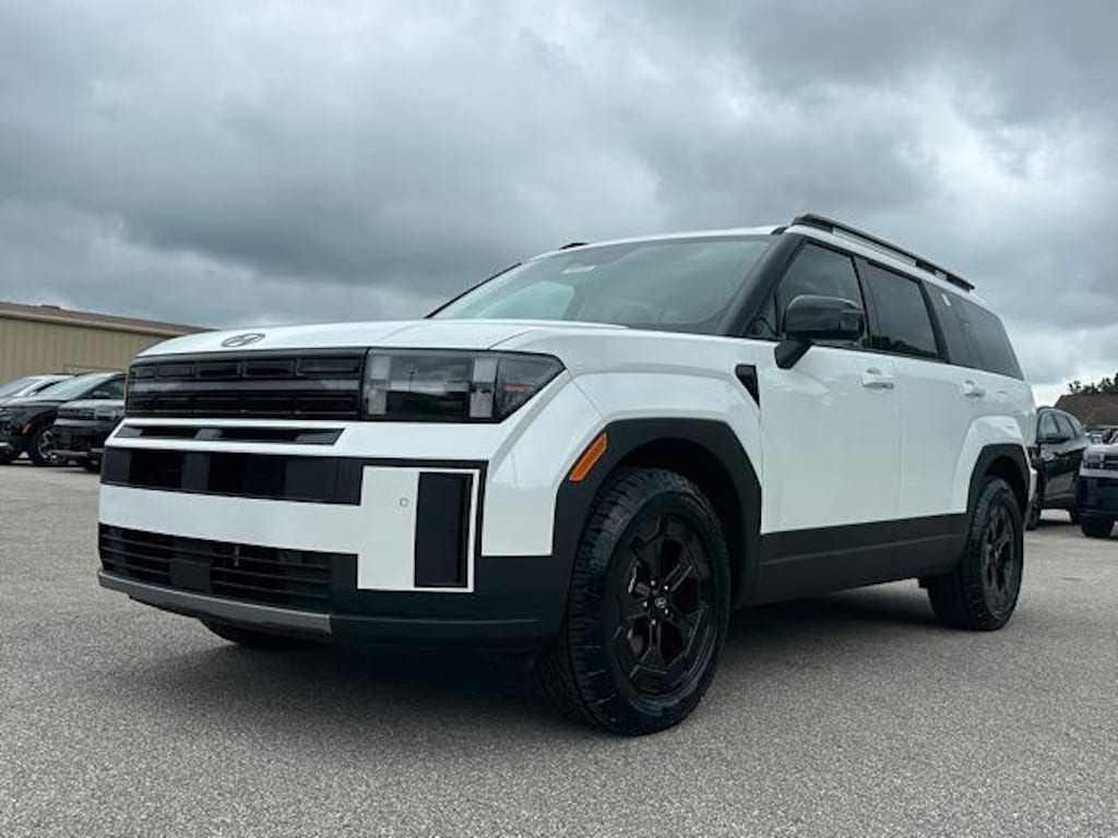 Check out all these great options Option Group 01, 3rd row seats: bench, 4-Wheel Disc Brakes, 6 Speakers, ABS brakes, Air Conditioning, Alloy wheels, AM/FM radio: SiriusXM, Apple CarPlay & Android Auto, Auto High-beam Headlights, Automatic temperature control, Brake assist, Bumpers: body-color, Cargo Cover/Screen, Cargo Net, Cargo Tray, Carpeted Floor Mats, Delay-off headlights, Driver door bin, Driver vanity mirror, Dual front impact airbags, Dual front side impact airbags, Electronic Stability Control, Emergency communication system, Exterior Parking Camera Rear, First Aid Kit, Four wheel independent suspension, Front anti-roll bar, Front Bucket Seats, Front Center Armrest, Front dual zone A/C, Front reading lights, Fully automatic headlights, H-Tex Leatherette Seat Trim, Heated door mirrors, Heated Front Bucket Seats, Heated front seats, Illuminated entry, Knee airbag, Leather steering wheel, Low tire pressure warning, Navigation System, Occupant sensing airbag, Outside temperature display, Overhead airbag, Overhead console, Panic alarm, Passenger door bin, Passenger vanity mirror, Power door mirrors, Power driver seat, Power Liftgate, Power moonroof, Power steering, Power windows, Radio: AM/FM/HD Display Audio, Rear anti-roll bar, Rear seat center armrest, Rear side impact airbag, Rear window defroster, Rear window wiper, Remote keyless entry, Security system, Speed control, Speed-sensing steering, Split folding rear seat, Spoiler, Steering wheel mounted audio controls, Tachometer, Telescoping steering wheel, Tilt steering wheel, Tow Hitch, Traction control, Trip computer, Turn signal indicator mirrors, Variably intermittent wipers, and Wheels: 18" x 7.5J Dark Alloy. Serenity White 2026 Hyundai Santa Fe XRT AWD 8-Speed Automatic with SHIFTRONIC 2.5L I4