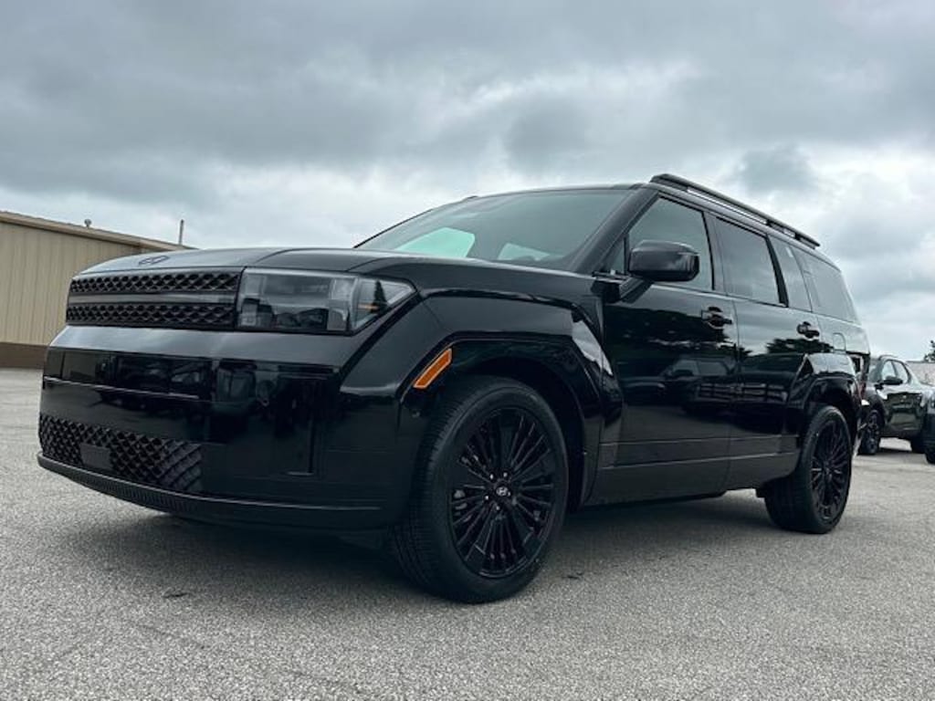 Check out all these great options Option Group 01, 12 Speakers, 3rd row seats: bench, 4-Wheel Disc Brakes, ABS brakes, Air Conditioning, Alloy wheels, AM/FM radio: SiriusXM, Apple CarPlay & Android Auto, Auto High-beam Headlights, Auto-dimming Rear-View mirror, Automatic temperature control, Brake assist, Bumpers: body-color, Cargo Net, Cargo Tray, Carpeted Floor Mats, Delay-off headlights, Driver door bin, Driver vanity mirror, Dual front impact airbags, Dual front side impact airbags, Electronic Stability Control, Emergency communication system, Exterior Parking Camera Rear, First Aid Kit, Four wheel independent suspension, Front anti-roll bar, Front Bucket Seats, Front Center Armrest, Front dual zone A/C, Front reading lights, Fully automatic headlights, Garage door transmitter: HomeLink, Heads-Up Display, Heated & Ventilated Front Bucket Seats, Heated door mirrors, Heated front seats, Heated rear seats, Heated steering wheel, Illuminated entry, Knee airbag, Leather steering wheel, Low tire pressure warning, Memory seat, Mudguards, Navigation System, Occupant sensing airbag, Outside temperature display, Overhead airbag, Overhead console, Panic alarm, Passenger door bin, Passenger vanity mirror, Power door mirrors, Power driver seat, Power Liftgate, Power moonroof, Power passenger seat, Power steering, Power windows, Quilted Premium Nappa Leather Seat Trim, Radio: AM/FM/HD Bose Premium Audio System, Rain sensing wipers, Rear anti-roll bar, Rear side impact airbag, Rear window defroster, Rear window wiper, Remote keyless entry, Roadside Assistance Kit, Roof Rack Crossbars, Security system, Speed control, Speed-sensing steering, Split folding rear seat, Spoiler, Steering wheel mounted audio controls, Tachometer, Telescoping steering wheel, Tilt steering wheel, Traction control, Trip computer, Turn signal indicator mirrors, Variably intermittent wipers, Ventilated front seats, and Wheels: 20" x 8.5J Unique Dark Finish Alloy. Phantom Black 2026 Hyundai Santa Fe Hybrid Calligraphy AWD 6-Speed Automatic with Shiftronic I4