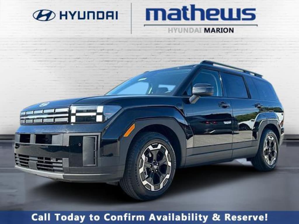 Check out all these great options Option Group 01, 18" x 7.5J Alloy Wheels, 3rd row seats: bench, 4-Wheel Disc Brakes, 6 Speakers, ABS brakes, Air Conditioning, Alloy wheels, AM/FM radio: SiriusXM, Apple CarPlay & Android Auto, Auto High-beam Headlights, Automatic temperature control, Brake assist, Bumpers: body-color, Cargo Cover/Screen, Cargo Net, Cargo Tray, Carpeted Floor Mats, Delay-off headlights, Driver door bin, Driver vanity mirror, Dual front impact airbags, Dual front side impact airbags, Electronic Stability Control, Emergency communication system, Exterior Parking Camera Rear, First Aid Kit, Four wheel independent suspension, Front anti-roll bar, Front Bucket Seats, Front Center Armrest, Front dual zone A/C, Front reading lights, Fully automatic headlights, H-Tex Leatherette Seat Trim, Heated door mirrors, Heated Front Bucket Seats, Heated front seats, Illuminated entry, Knee airbag, Leather steering wheel, Low tire pressure warning, Occupant sensing airbag, Outside temperature display, Overhead airbag, Overhead console, Panic alarm, Passenger door bin, Passenger vanity mirror, Power door mirrors, Power driver seat, Power Liftgate, Power steering, Power windows, Radio: AM/FM/HD Display Audio, Rear anti-roll bar, Rear seat center armrest, Rear side impact airbag, Rear window defroster, Rear window wiper, Remote keyless entry, Security system, Speed control, Speed-sensing steering, Split folding rear seat, Spoiler, Steering wheel mounted audio controls, Tachometer, Telescoping steering wheel, Tilt steering wheel, Tow Hitch, Traction control, Trip computer, Turn signal indicator mirrors, and Variably intermittent wipers. Phantom Black 2026 Hyundai Santa Fe SEL AWD 8-Speed Automatic with SHIFTRONIC 2.5L I4
