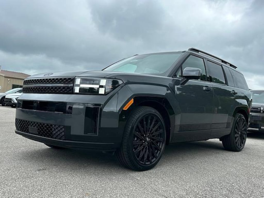 Check out all these great options Option Group 01, 12 Speakers, 3rd row seats: bench, 4-Wheel Disc Brakes, ABS brakes, Air Conditioning, All Season Fitted Liners, Alloy wheels, AM/FM radio: SiriusXM, Apple CarPlay & Android Auto, Auto High-beam Headlights, Auto-dimming Rear-View mirror, Automatic temperature control, Brake assist, Bumpers: body-color, Cargo Blocks, Cargo Cover/Screen, Cargo Net, Cargo Tray, Carpeted Floor Mats, Delay-off headlights, Driver door bin, Driver vanity mirror, Dual front impact airbags, Dual front side impact airbags, Electronic Stability Control, Emergency communication system, Exterior Parking Camera Rear, First Aid Kit, Four wheel independent suspension, Front anti-roll bar, Front Bucket Seats, Front Center Armrest, Front dual zone A/C, Front reading lights, Fully automatic headlights, Garage door transmitter: HomeLink, Heads-Up Display, Heated & Ventilated Front Bucket Seats, Heated door mirrors, Heated front seats, Heated rear seats, Heated steering wheel, Illuminated entry, Knee airbag, Leather steering wheel, Low tire pressure warning, Memory seat, Mudguards, Navigation System, Occupant sensing airbag, Outside temperature display, Overhead airbag, Overhead console, Panic alarm, Passenger door bin, Passenger vanity mirror, Power door mirrors, Power driver seat, Power Liftgate, Power moonroof, Power passenger seat, Power steering, Power windows, Quilted Premium Nappa Leather Seat Trim, Radio: AM/FM/HD Bose Premium Audio System, Rain sensing wipers, Rear anti-roll bar, Rear side impact airbag, Rear window defroster, Rear window wiper, Remote keyless entry, Roadside Assistance Kit, Security system, Speed control, Speed-sensing steering, Split folding rear seat, Spoiler, Steering wheel mounted audio controls, Tachometer, Telescoping steering wheel, Tilt steering wheel, Traction control, Trip computer, Turn signal indicator mirrors, Variably intermittent wipers, Ventilated front seats, and Wheels: 21" x 8.5J Unique Dark Finish Alloy. Ecotronic Gray 2026 Hyundai Santa Fe Calligraphy AWD 8-Speed Automatic with SHIFTRONIC 2.5L I4