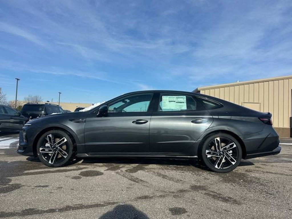 Check out all these great options Option Group 01, 12 Speakers, 19" x 8.0J Aluminum Alloy Wheels, 4-Wheel Disc Brakes, ABS brakes, Air Conditioning, Alloy wheels, AM/FM radio: SiriusXM, Apple CarPlay & Android Auto, Auto High-beam Headlights, Auto-dimming Rear-View mirror, Automatic temperature control, Brake assist, Bumpers: body-color, Cargo Side Bins, Cargo Tray, Carpeted Floor Mats, Delay-off headlights, Driver door bin, Driver vanity mirror, Dual front impact airbags, Dual front side impact airbags, Electronic Stability Control, Emergency communication system: Bluelink+, Exterior Parking Camera Rear, First Aid Kit, Four wheel independent suspension, Front anti-roll bar, Front Bucket Seats, Front Center Armrest, Front dual zone A/C, Front reading lights, Fully automatic headlights, Heated door mirrors, Heated front seats, Heated N Unique Sport Seats, Illuminated entry, Knee airbag, Leather steering wheel, Leatherette/Suede Combination Seating Surfaces, Low tire pressure warning, Navigation System, Occupant sensing airbag, Outside temperature display, Overhead airbag, Overhead console, Panic alarm, Passenger door bin, Passenger vanity mirror, Power door mirrors, Power driver seat, Power moonroof, Power steering, Power windows, Radio data system, Radio: AM/FM/HD/MP3/SiriusXM/Navigation, Rear anti-roll bar, Rear seat center armrest, Rear side impact airbag, Rear window defroster, Remote keyless entry, Security system, Speed control, Speed-sensing steering, Speed-Sensitive Wipers, Split folding rear seat, Spoiler, Sport steering wheel, Steering wheel mounted audio controls, Tachometer, Telescoping steering wheel, Tilt steering wheel, Traction control, Trip computer, and Variably intermittent wipers. Portofino Gray 2026 Hyundai Sonata N Line FWD 8-Speed I4