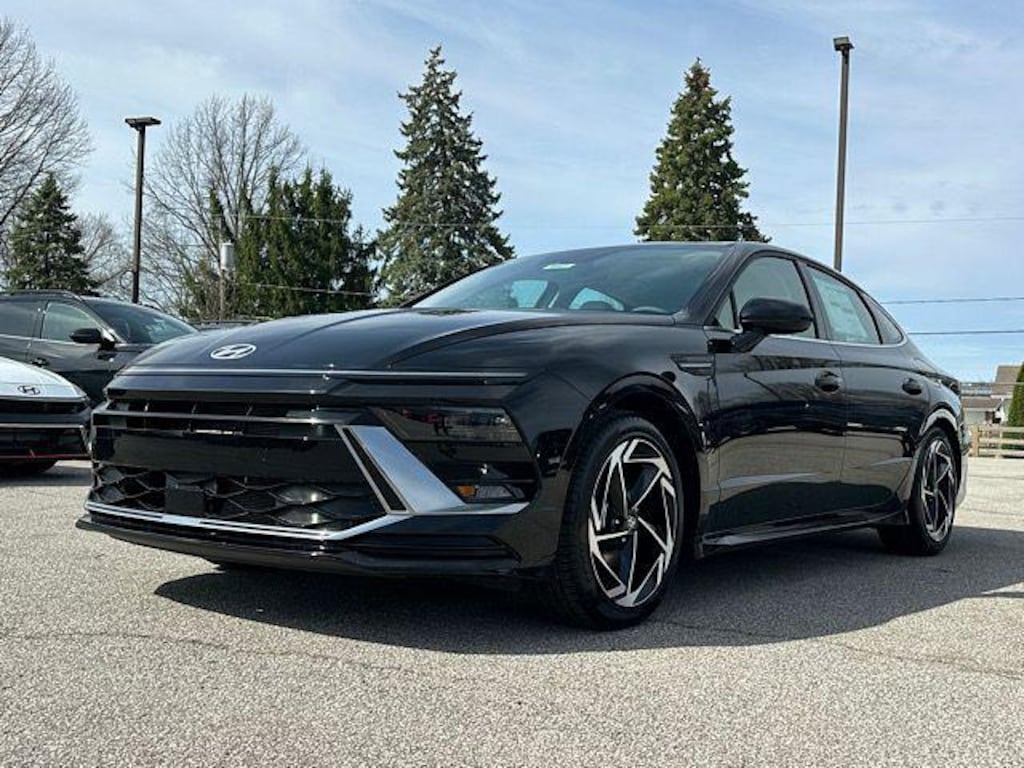 Check out all these great options Option Group 01, 18" x 7.5J Aluminum Alloy Wheels, 4-Wheel Disc Brakes, 6 Speakers, ABS brakes, Air Conditioning, Alloy wheels, AM/FM radio: SiriusXM, Apple CarPlay & Android Auto, Auto High-beam Headlights, Automatic temperature control, Brake assist, Bumpers: body-color, Cargo Net, Cargo Tray, Carpeted Floor Mats, Delay-off headlights, Driver door bin, Driver vanity mirror, Dual front impact airbags, Dual front side impact airbags, Electronic Stability Control, Emergency communication system: None, Exterior Parking Camera Rear, First Aid Kit, Four wheel independent suspension, Front anti-roll bar, Front Bucket Seats, Front Center Armrest, Front dual zone A/C, Front reading lights, Fully automatic headlights, Heated door mirrors, Heated Front Bucket Seats, Heated front seats, Illuminated entry, Knee airbag, Leather steering wheel, Low tire pressure warning, Occupant sensing airbag, Outside temperature display, Overhead airbag, Overhead console, Panic alarm, Passenger door bin, Passenger vanity mirror, Power door mirrors, Power driver seat, Power steering, Power windows, Premium Cloth Seating Surfaces, Radio data system, Radio: AM/FM/HD/MP3/SiriusXM, Rear anti-roll bar, Rear Bumper Applique, Rear seat center armrest, Rear side impact airbag, Rear window defroster, Remote keyless entry, Security system, Severe Weather Kit, Speed control, Speed-sensing steering, Speed-Sensitive Wipers, Split folding rear seat, Steering wheel mounted audio controls, Tachometer, Telescoping steering wheel, Tilt steering wheel, Traction control, Trip computer, and Variably intermittent wipers. Abyss Black 2026 Hyundai Sonata SEL Sport AWD 8-Speed Automatic I4