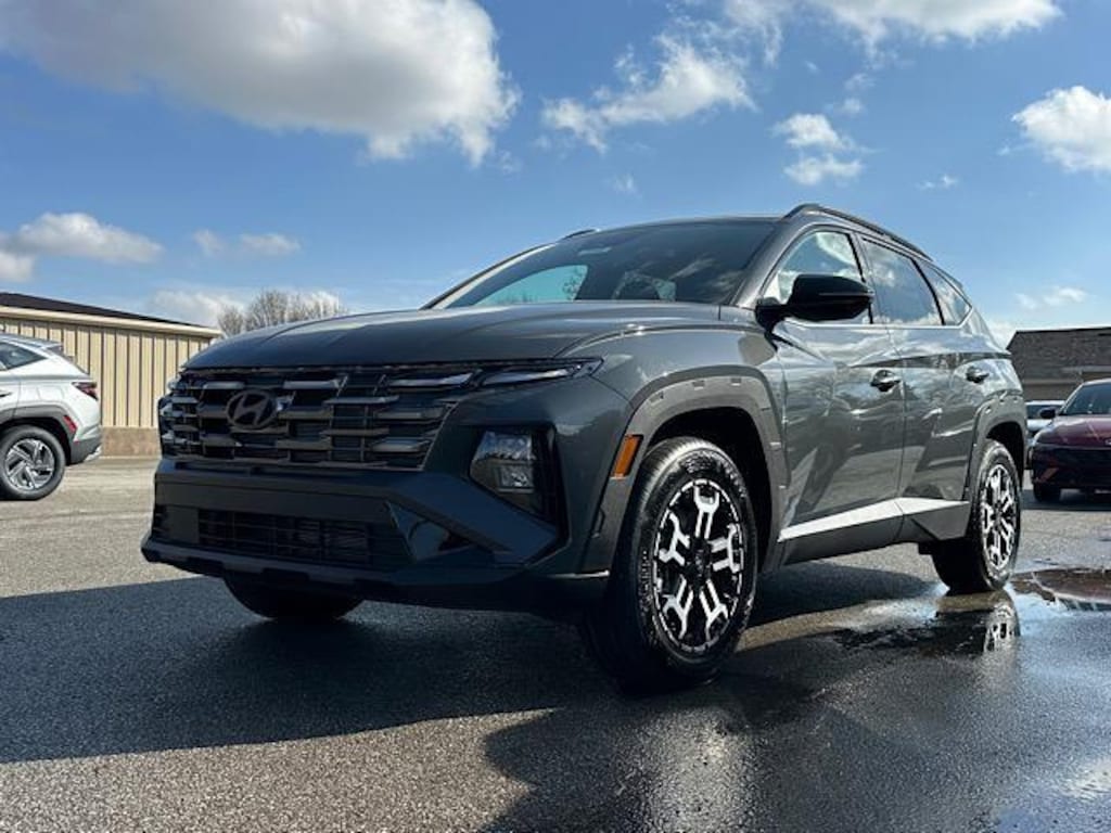 Check out all these great options Option Group 01, 4-Wheel Disc Brakes, 6 Speakers, ABS brakes, Air Conditioning, Alloy wheels, AM/FM radio: SiriusXM, Apple CarPlay & Android Auto, Auto High-beam Headlights, Automatic temperature control, Brake assist, Bumpers: body-color, Cargo Net, Cargo Tray, Carpeted Floor Mats, Delay-off headlights, Driver door bin, Driver vanity mirror, Dual front impact airbags, Dual front side impact airbags, Electronic Stability Control, Emergency communication system: None, First Aid Kit, Four wheel independent suspension, Front anti-roll bar, Front Bucket Seats, Front Center Armrest, Front dual zone A/C, Front reading lights, Fully automatic headlights, H-Tex Seat Trim, Heated door mirrors, Heated Front Bucket Seats, Heated front seats, Illuminated entry, Leather Shift Knob, Leather steering wheel, Low tire pressure warning, Occupant sensing airbag, Outside temperature display, Overhead airbag, Overhead console, Panic alarm, Passenger door bin, Passenger vanity mirror, Power door mirrors, Power driver seat, Power Liftgate, Power steering, Power windows, Radio data system, Radio: AM/FM/HD Audio System, Rear anti-roll bar, Rear reading lights, Rear seat center armrest, Rear side impact airbag, Rear window defroster, Rear window wiper, Remote keyless entry, Security system, Severe Weather Kit, Speed control, Split folding rear seat, Spoiler, Steering wheel mounted audio controls, Tachometer, Telescoping steering wheel, Tilt steering wheel, Traction control, Trip computer, Turn signal indicator mirrors, Variably intermittent wipers, and Wheels: : 18" x 7.5J Xrt-Exclusive Alloy. Ecotronic Gray 2026 Hyundai Tucson XRT AWD 8-Speed Automatic with SHIFTRONIC 2.5L I4 DGI DOHC 16V LEV3-SULEV30 187hp