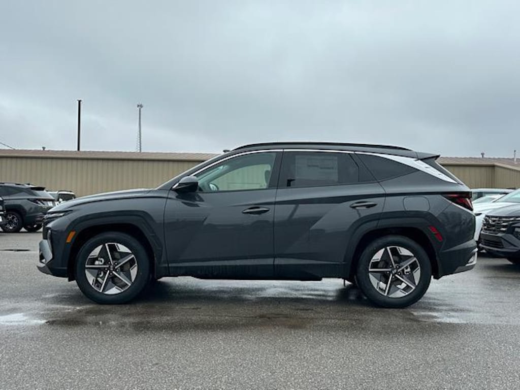 Check out all these great options Option Group 01, 18" x 7.5J Alloy Wheels, 4-Wheel Disc Brakes, 6 Speakers, ABS brakes, Air Conditioning, Alloy wheels, AM/FM radio: SiriusXM, Apple CarPlay & Android Auto, Auto High-beam Headlights, Automatic temperature control, Brake assist, Bumpers: body-color, Cargo Net, Cargo Organizer, Cargo Tray, Carpeted Floor Mats, Cloth Seat Trim, Delay-off headlights, Driver door bin, Driver vanity mirror, Dual front impact airbags, Dual front side impact airbags, Electronic Stability Control, Emergency communication system: None, First Aid Kit, Four wheel independent suspension, Front anti-roll bar, Front Bucket Seats, Front Center Armrest, Front dual zone A/C, Front reading lights, Fully automatic headlights, Heated door mirrors, Heated Front Bucket Seats, Heated front seats, Illuminated entry, Low tire pressure warning, Mudguards, Occupant sensing airbag, Outside temperature display, Overhead airbag, Overhead console, Panic alarm, Passenger door bin, Passenger vanity mirror, Power door mirrors, Power driver seat, Power Liftgate, Power steering, Power windows, Radio data system, Radio: AM/FM/HD Audio System, Rear anti-roll bar, Rear reading lights, Rear seat center armrest, Rear side impact airbag, Rear window defroster, Rear window wiper, Remote keyless entry, Security system, Speed control, Split folding rear seat, Spoiler, Steering wheel mounted audio controls, Tachometer, Telescoping steering wheel, Tilt steering wheel, Traction control, Trip computer, and Variably intermittent wipers. Ecotronic Gray 2026 Hyundai Tucson SEL FWD 8-Speed Automatic with SHIFTRONIC 2.5L I4 DGI DOHC 16V LEV3-SULEV30 187hp